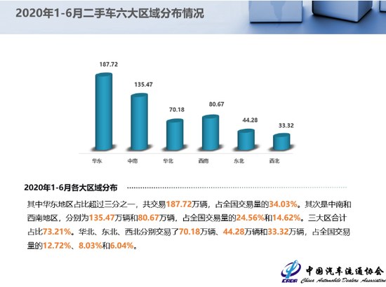 6月,除華北和西北地區二手車(chē)交易量較上月有所下降以外,全國其他地區二手車(chē)交易量較上月均有所增長(zhǎng)。其中中南地區增幅最爲明顯,環比增長(zhǎng)8.03%;華東地區環比增長(zhǎng)4.38%;西南地區環比增長(zhǎng)5.91%;東北地區增長(zhǎng)6.23%。