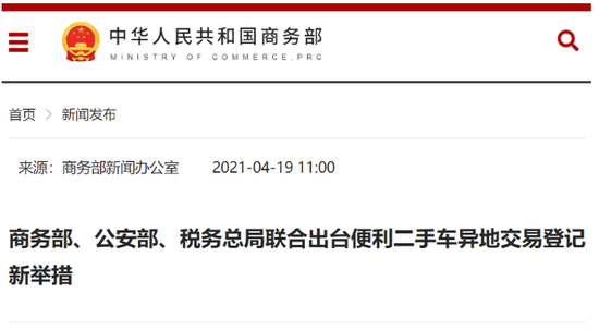 爲貫徹落實國務院深化“放管服”改革、推進政務服務“跨省通辦”部署要求,加快推行小型非營運二手車交易登記跨省通辦,促進二手車便利交易,加快形成二手車交易全國統一大市場,近日,商務部、公安部、稅務總局聯合印發《關於(yú)推進二手車交易登記跨省通辦 便利二手車異地交易的通知》(以下簡稱《通知》),從制度方面著(zhe)力解決二手車異地交易周期長、不便捷等問題,進一步促進二手車交易行業發展。