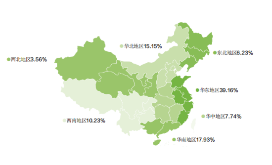 2020年,華東地區仍爲機動車(chē)拍賣市場(chǎng)重心所在,全年成交量14.48萬台,成交額62.15億元,分别占全國41.66%、39.16%份額。