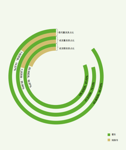 2020年,整車共計成交27.51萬台,占市場(chǎng)總量79.14%,較上年提升4.86個百分點,而殘(cán)值車在整個拍賣市場(chǎng)中仍保持較高成交率,達92.75%。
