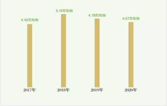 2020年,由於(yú)全國機動車拍賣市場(chǎng)車齡占比繼續向6 年以上長齡區間下沉,車輛均價下降至4.57 萬元/台,但3 年以下車齡段均價持續上升至9.08 萬元/ 台。