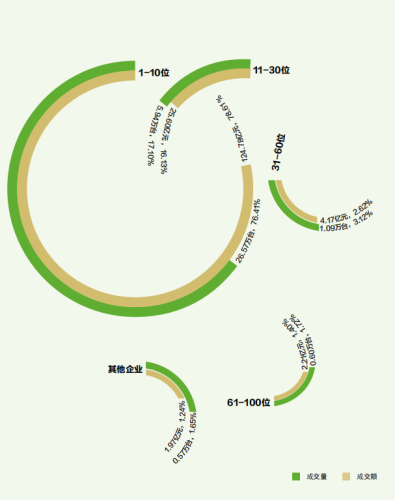 2020年,機動車(chē)拍賣市場(chǎng)集中度繼續加強,成交量和成交額前十名企業,其市場(chǎng)占有率分别爲76.41%、78.61%,分别較去年提升5.5和7.19個百分點。