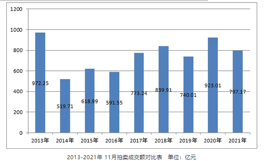 截至2021年11月底,全國31個省(區、市)及新疆生産(chǎn)建設兵團共有拍賣企業9117家,比上年同期增加912家;有分支機構266家,與上年持平;有國家注冊(cè)拍賣師12029人。