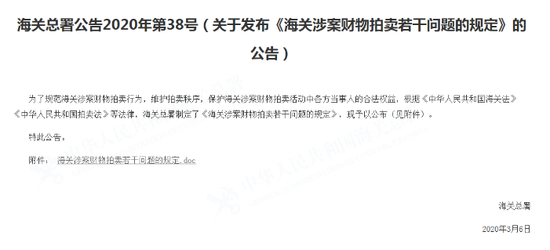 海關(guān)涉案财物拍賣若幹(gàn)問題的規定